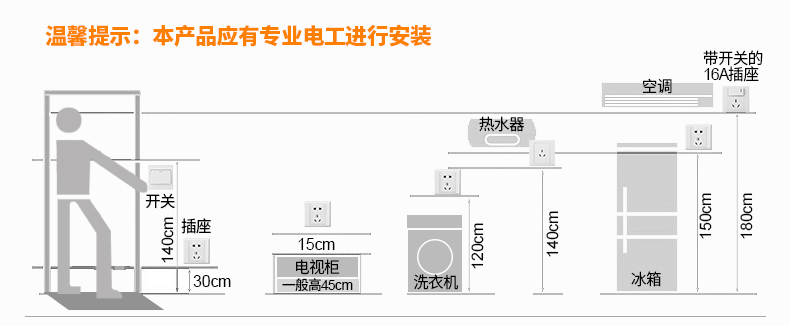 室內(nèi)各空間開(kāi)關(guān)插座高度示意圖