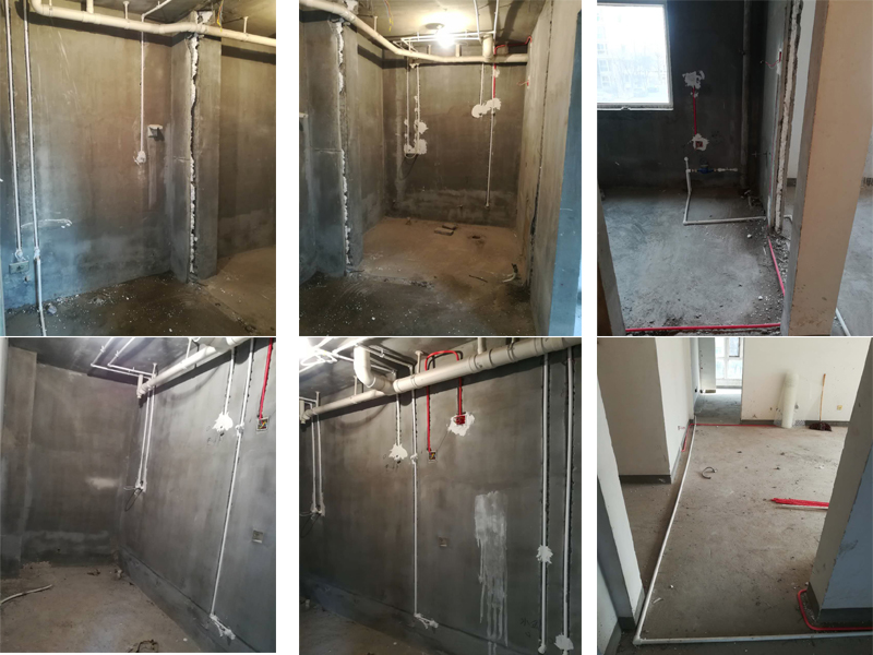 3.衛(wèi)生間刷二次防水,輕體磚包衛(wèi)生間下水立管,廚房貼墻磚準(zhǔn)備工作,墻面拉毛抹灰。