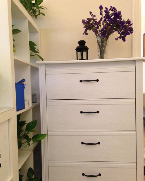 精致的白色五斗柜,儲藏鑰匙等小件物品。