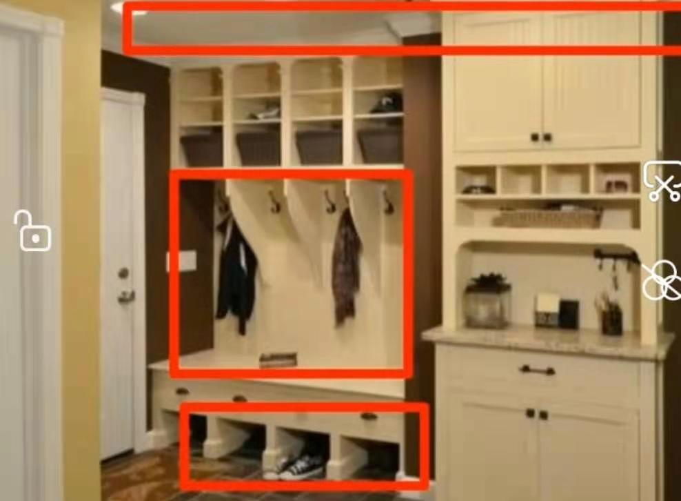 5.鞋柜:越大越好,能夠滿足一家多口放鞋子的需求,維持門內(nèi)玄關(guān)清潔,建議柜體到頂不藏灰,中空不置物,還要留底容納日常換拖鞋位。